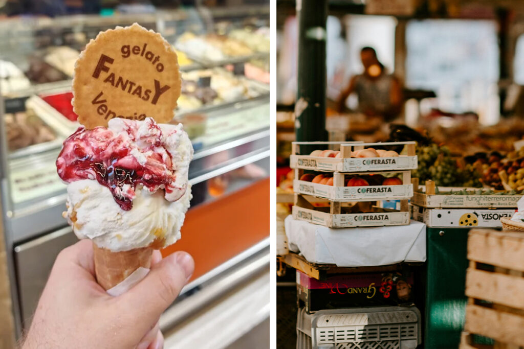 Among the best gelato shops in San Marco and Rialto, Gelato Fantasy stands out thanks to its inclusive variety and its multiple locations. It is also praised for balancing tradition and innovation, without having to queue for hours. Our staff speaks Italian, English, Spanish and French in instagram-friendly stores decorated with vintage photos on the walls.